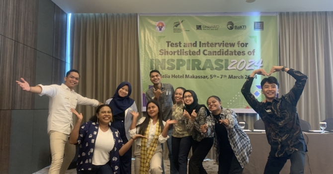 Proses seleksi berlangsung selama tiga hari dari tanggal 5 hingga 7 Maret 2024 di Kota Makassar dan dihadiri langsung oleh Christina Marcham (Program Manager INSPIRASI) dan Katja Neef (Program Coordinator) dari UnionAID New Zealand. Mereka didampingi oleh Zusanna Gosal (Deputi Direktur Eksekutif), Sherly Heumasse (Program Officer) dan beberapa staf Yayasan BaKTI sebagai mitra lokal yang memastikan bahwa proses seleksi berjalan dengan lancar dan sesuai dengan standar yang telah ditetapkan. Selain itu, hadir pula dua orang alumni/Program Officer INSPIRASI yakni Victor Matanggaran dan Andi Arifayani yang menjadi fasilitator selama proses kegiatan seleksi sekaligus bagian dari tim panel wawancara. Tak ketinggalan, para alumni INSPIRASI di Makassar dari berbagai cohort turut mengambil bagian dalam proses seleksi ini dengan berbagi cerita pengalaman selama mengikuti program INSPIRASI maupun pengalaman tinggal di New Zealand.